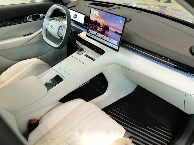 内饰上,采用了当下新能源车型惯有的设计风格,配备了15.4英寸的中控屏幕,顶配车型的屏幕还是“向日葵”屏幕,支持左右各15度范围内的旋转。功能上,当下常见的车机功能都没有缺失,同时还支持HUAWEI HiCar、Carlink的手机互联映射。